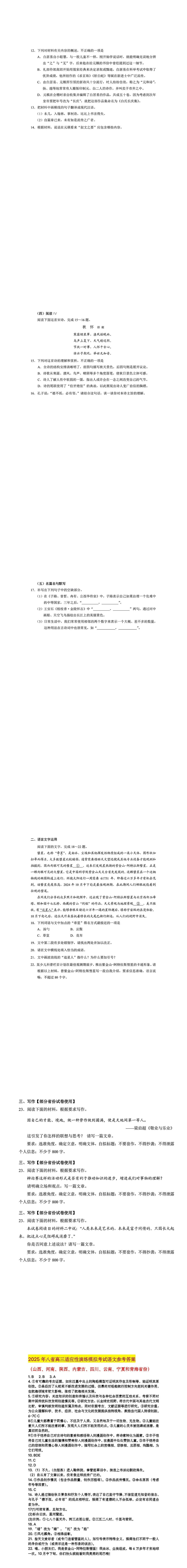 2025届高三新高考适应性考试于1月3日开考,刚刚八省联考2025高考综合改革适应性演练语文试题答案出炉,小编汇总整理了语文试题答案及中国考试官方发布的语文试题评析,一起来看!