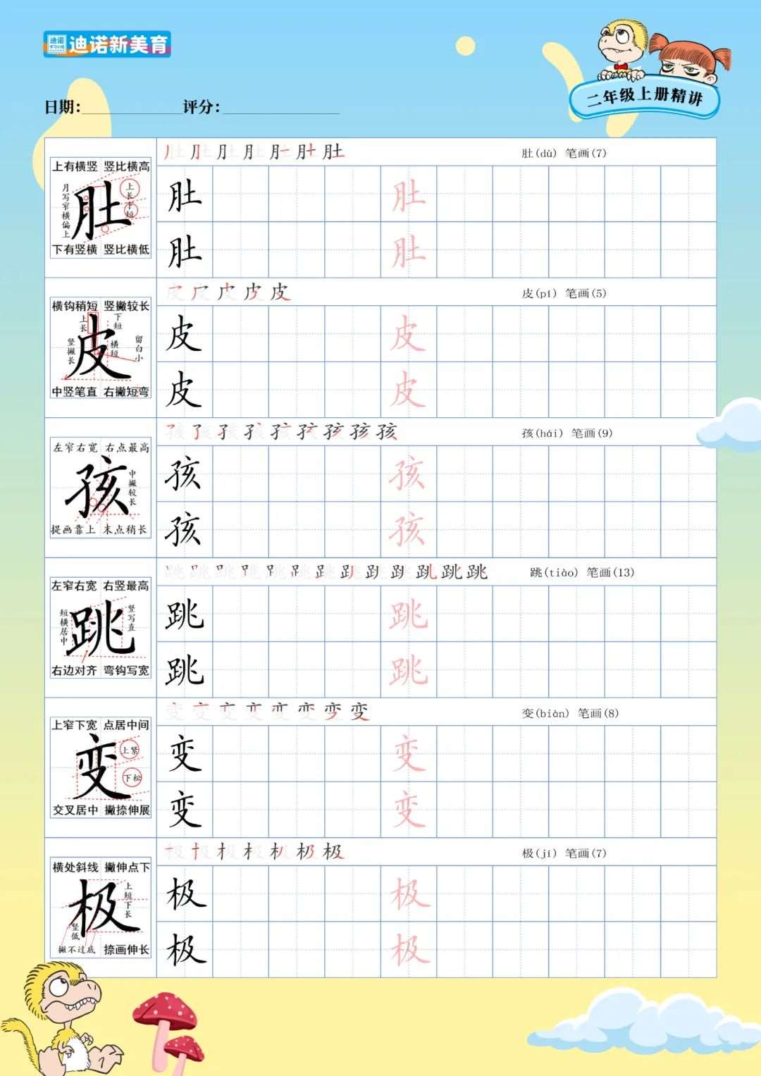 而在学习的道路上,语文作为基础至关重要,其中生字的书写更是关键的一环。