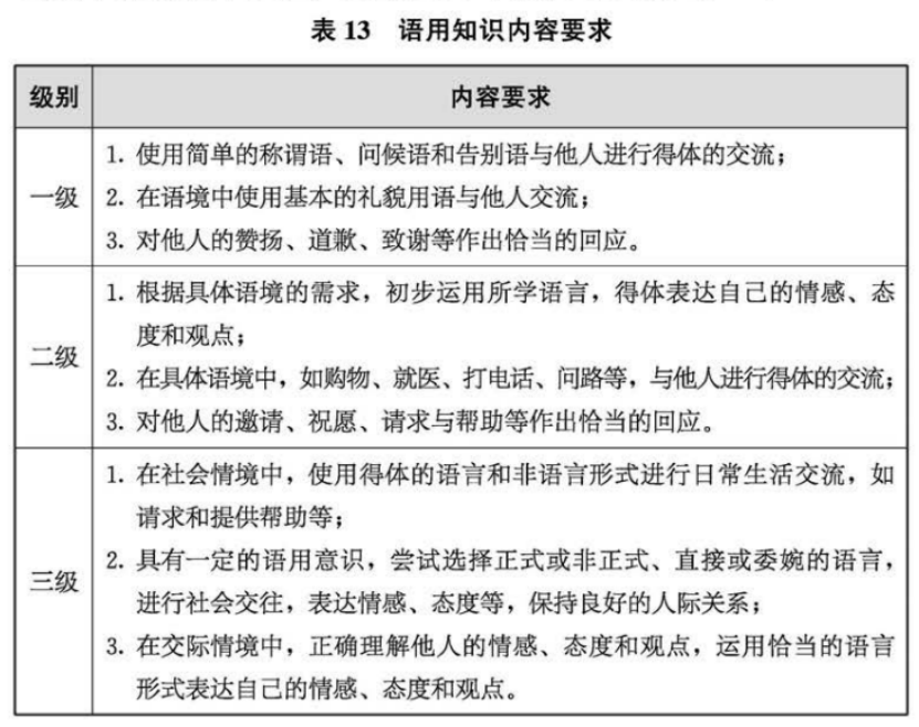 同时还增加了对语用知识的要求,进一步强化了英语作为“交流工具”的属性。