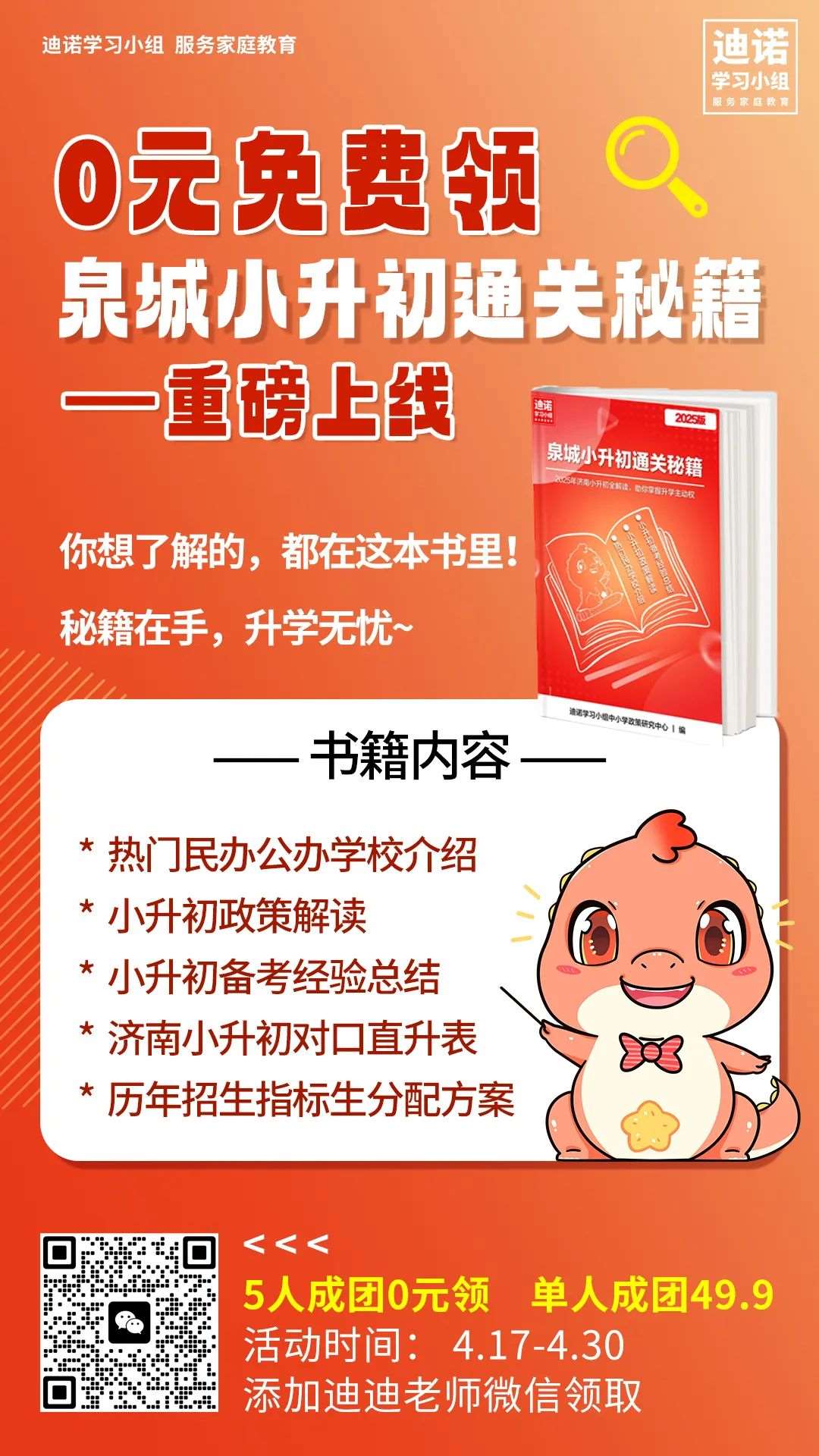 可扫码添加海报下方老师,免费获取更多小升初资讯学校招生通知,及《泉城小升初秘籍》