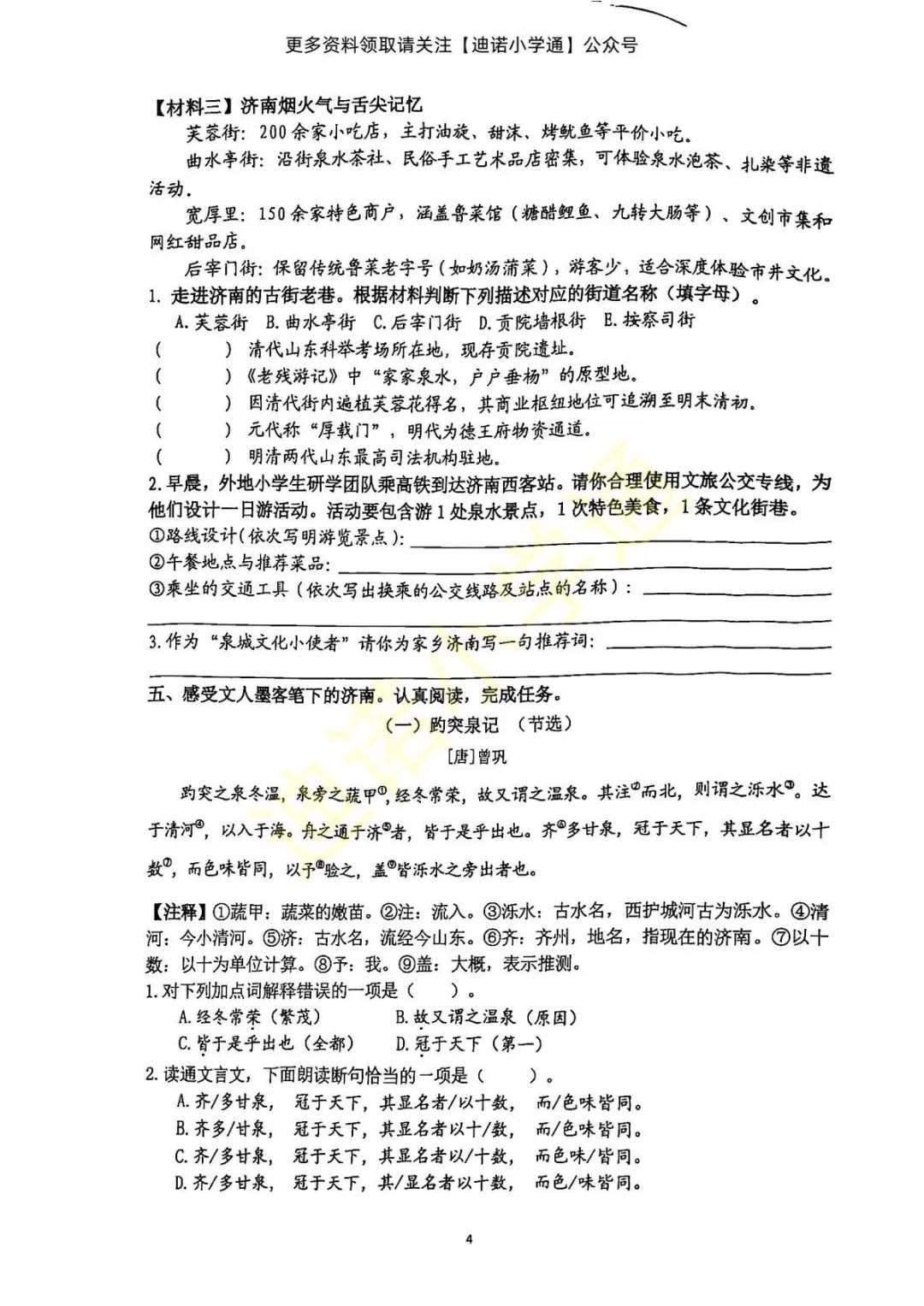 今天历下区抽测的语文和数学试卷真题已整理好,家长朋友们可以直接下载打印给孩子做!