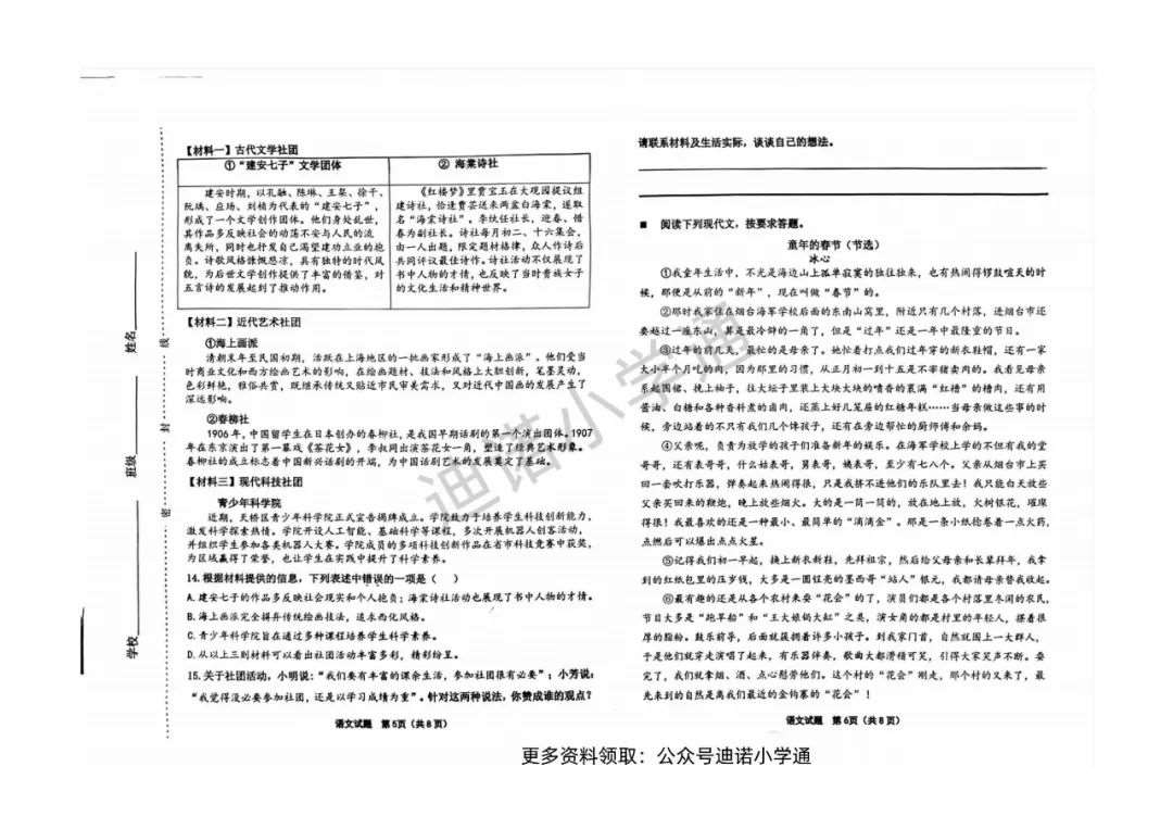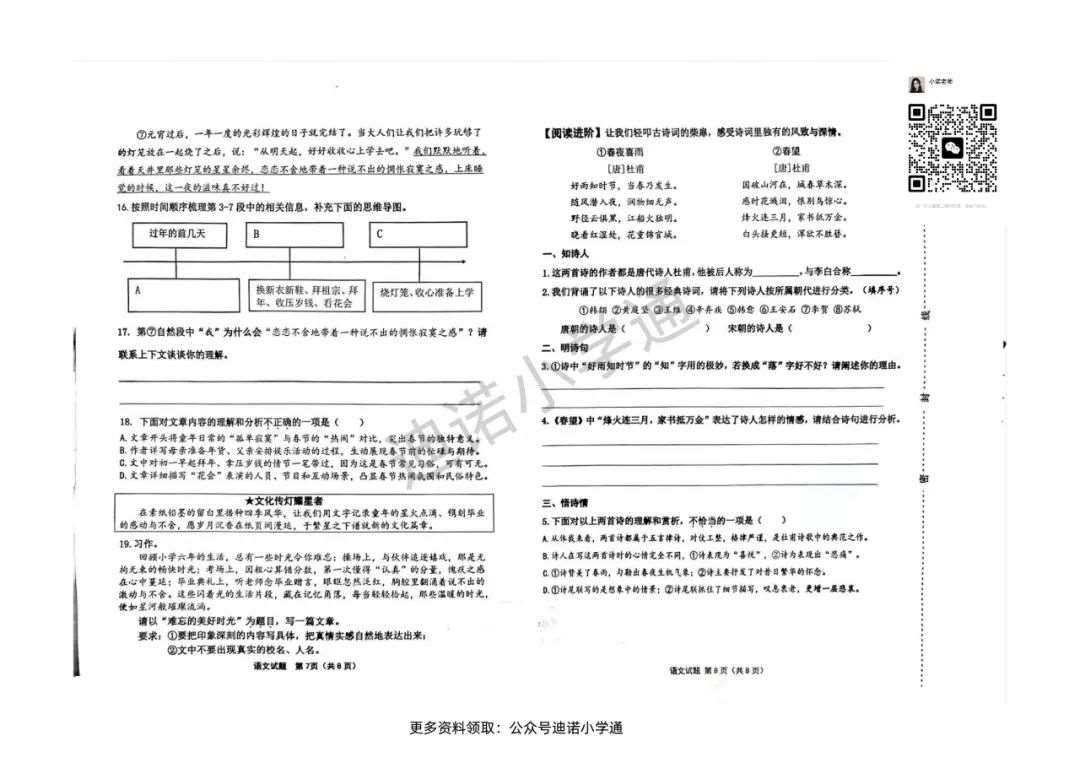 📢 2024-2025市中区六年级语文试卷和天桥区六年级数学、语文试卷新鲜出炉,大家可以下载打印,给孩子做!试卷持续更新中......