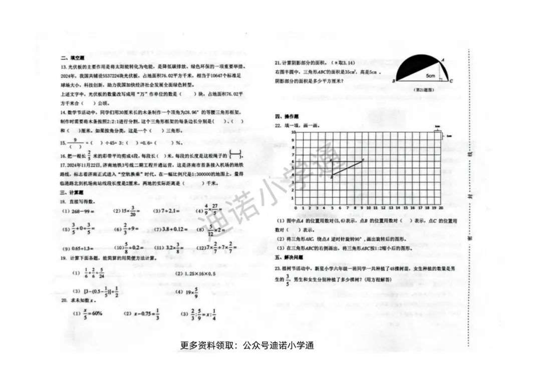 25小学期末考试试卷更新 | 市中+天桥六年级试卷
