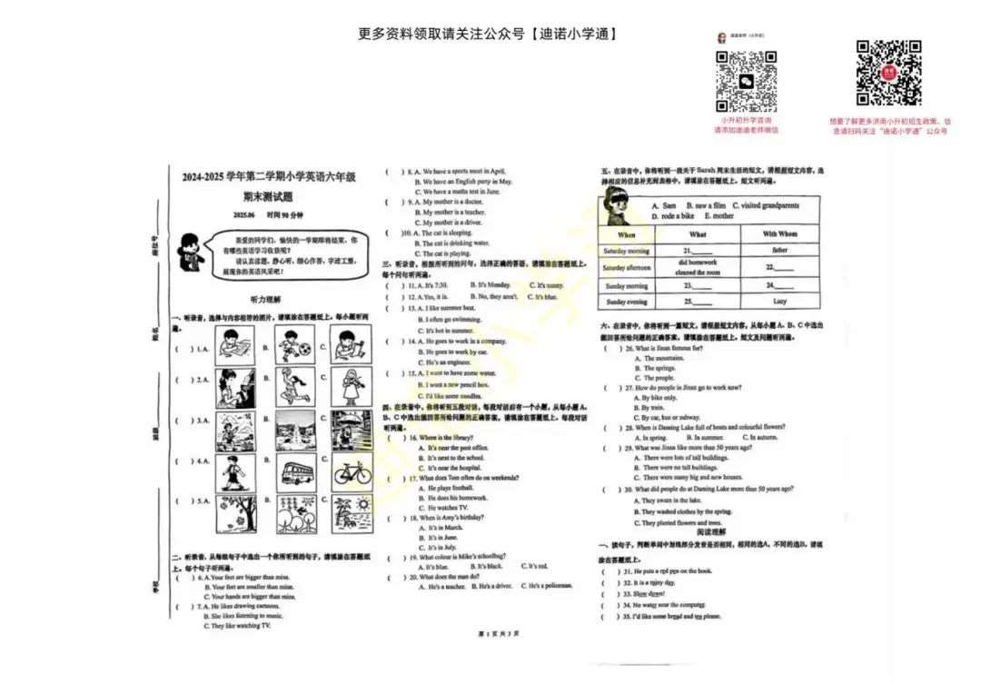 📢 2024-2025市中区六年级数学和英语试卷新鲜出炉,大家可以下载打印,给孩子做!试卷持续更新中......