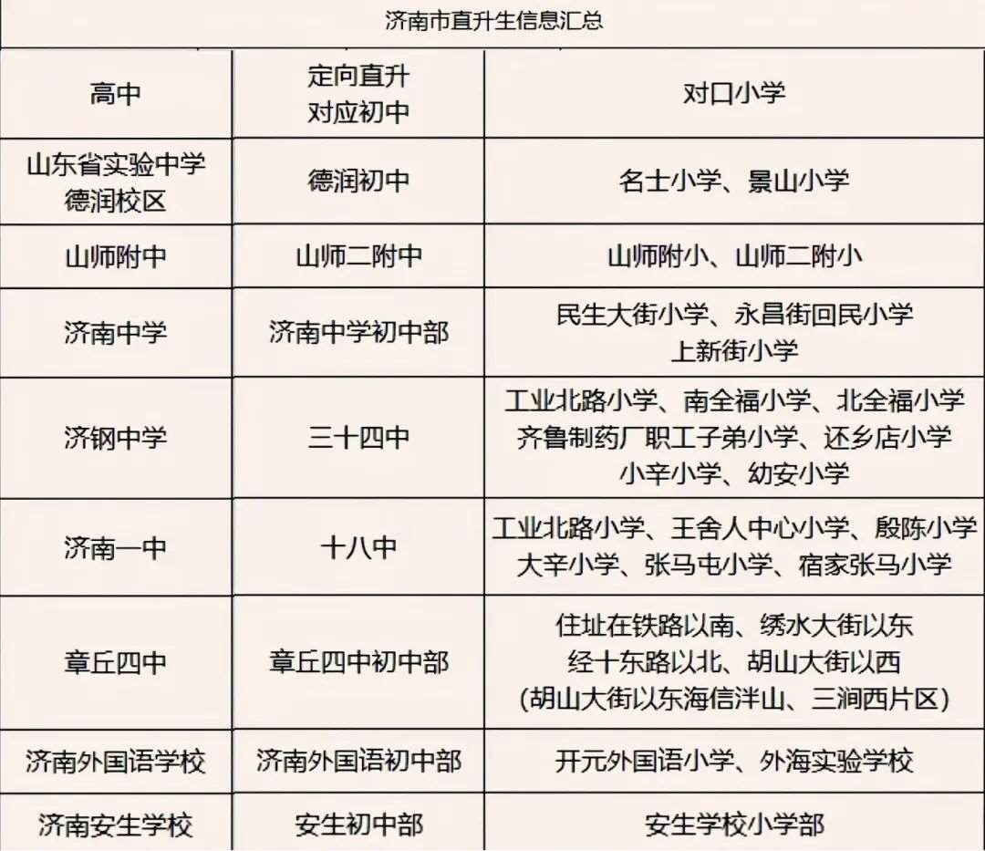 目前招收直升定向生的高中有山师附中、济南中学、济钢高中、德润、历城一中、章丘四中、章丘一中等。