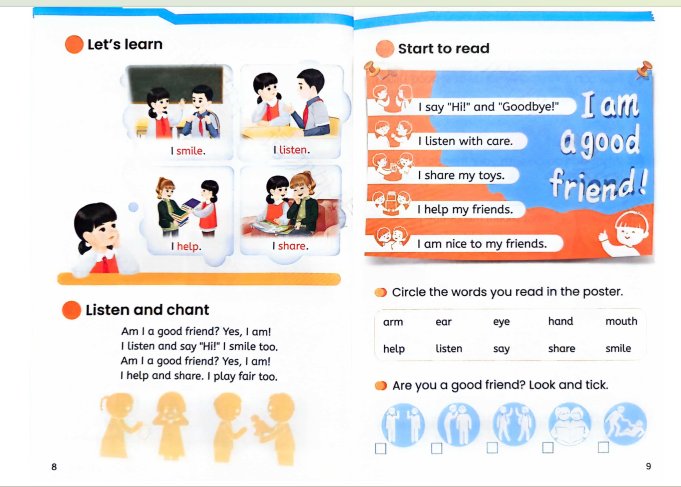 2.name body parts and describe how to be a good friend
