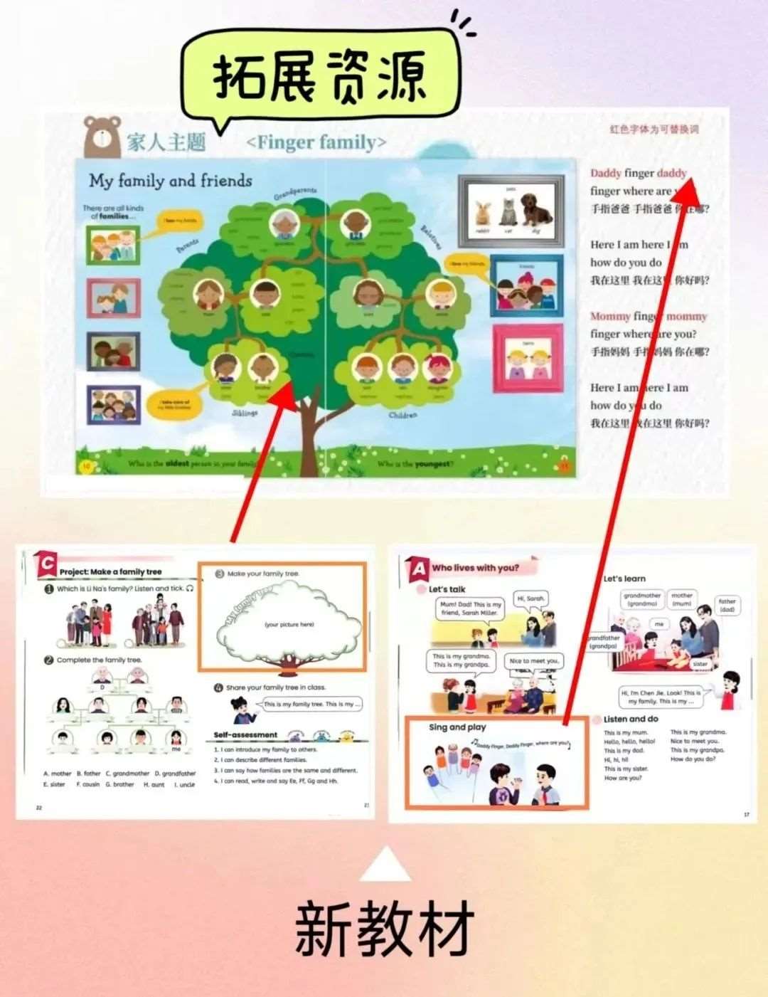 除了儿歌,词汇拓展文件夹下的PDF拓展资源也有不少和新教材很配套的地方哦,可以打印和孩子拓展练习。