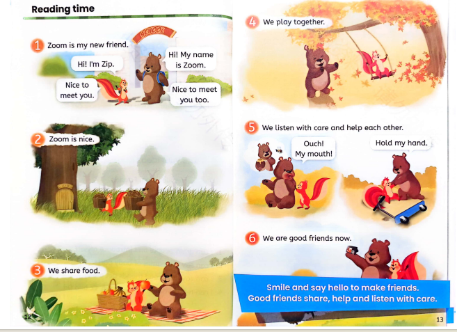 此外,Part C还增设了“Reading Time”,为学生提供了一个与友谊主题紧密相关的小故事阅读机会,形式类似于绘本阅读。这一设计不仅丰富了教材内容,还拓宽了学生的阅读视野,进一步加深了他们对友谊这一主题的理解与感悟。