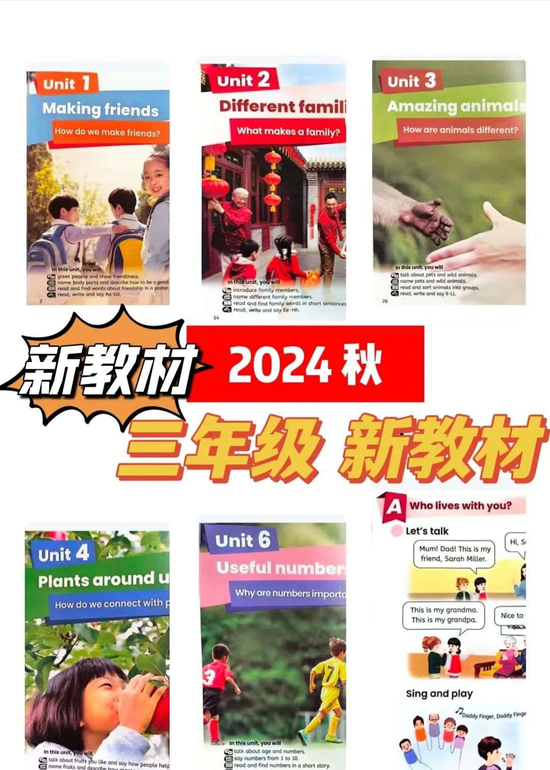 一睹人教版三上英语新教材(三年级起点)风采,全书六单元首页图以真人实景拼接而成,每一幕都洋溢着生活气息,场景设计贴近儿童视角,极易引发孩子们的情感共鸣。