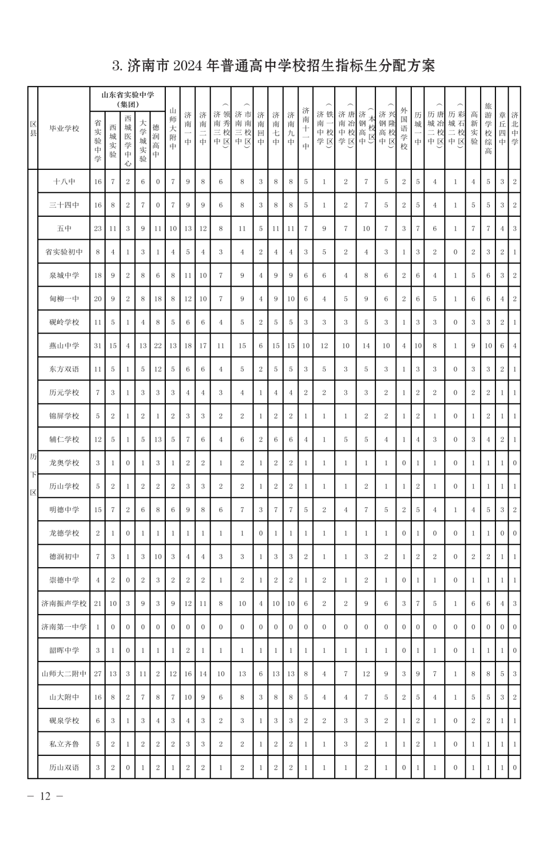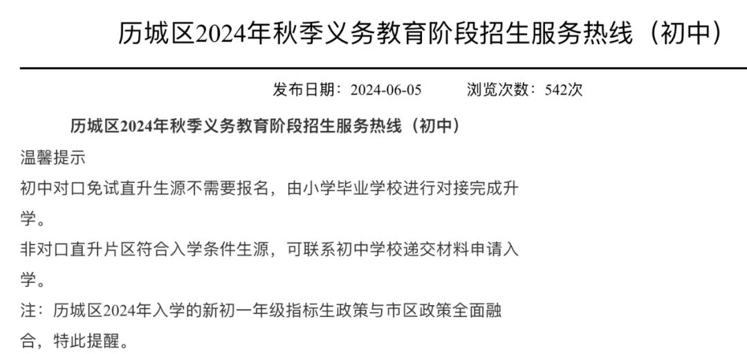 历下区 / 2024年指标生名额