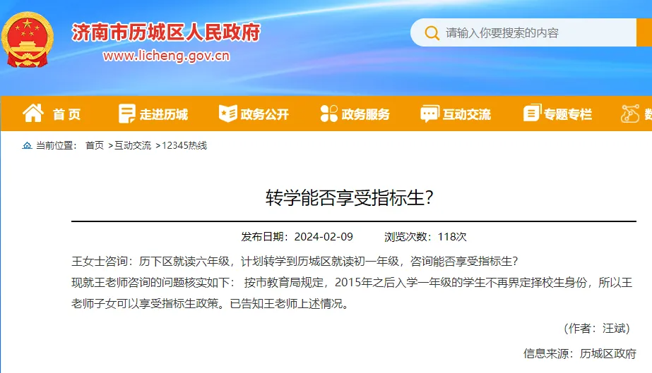 2. 转学的政策依据和解读,请参阅《2024年历下区中小学招生指南》。
