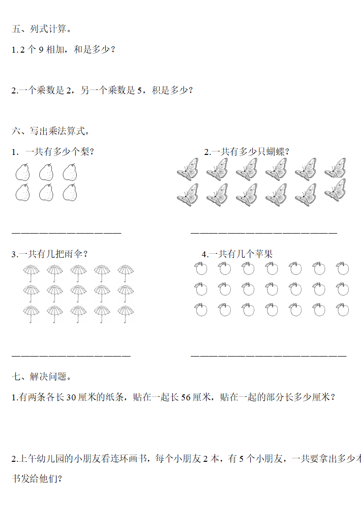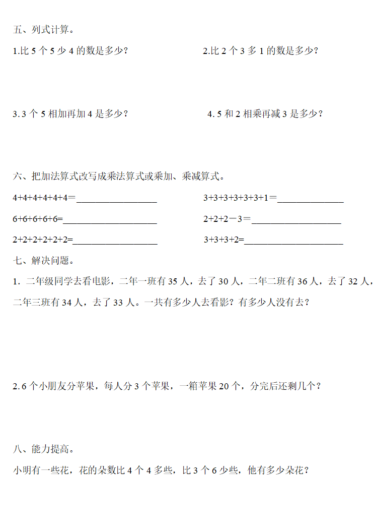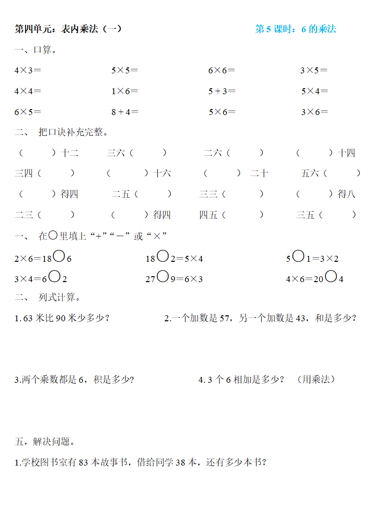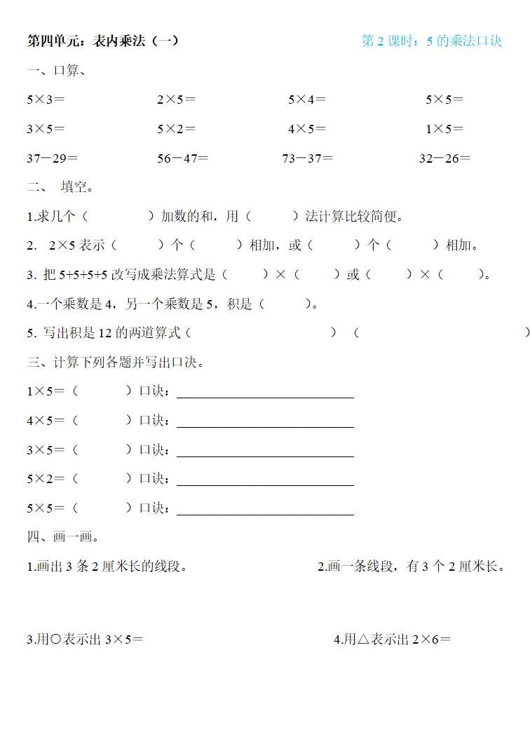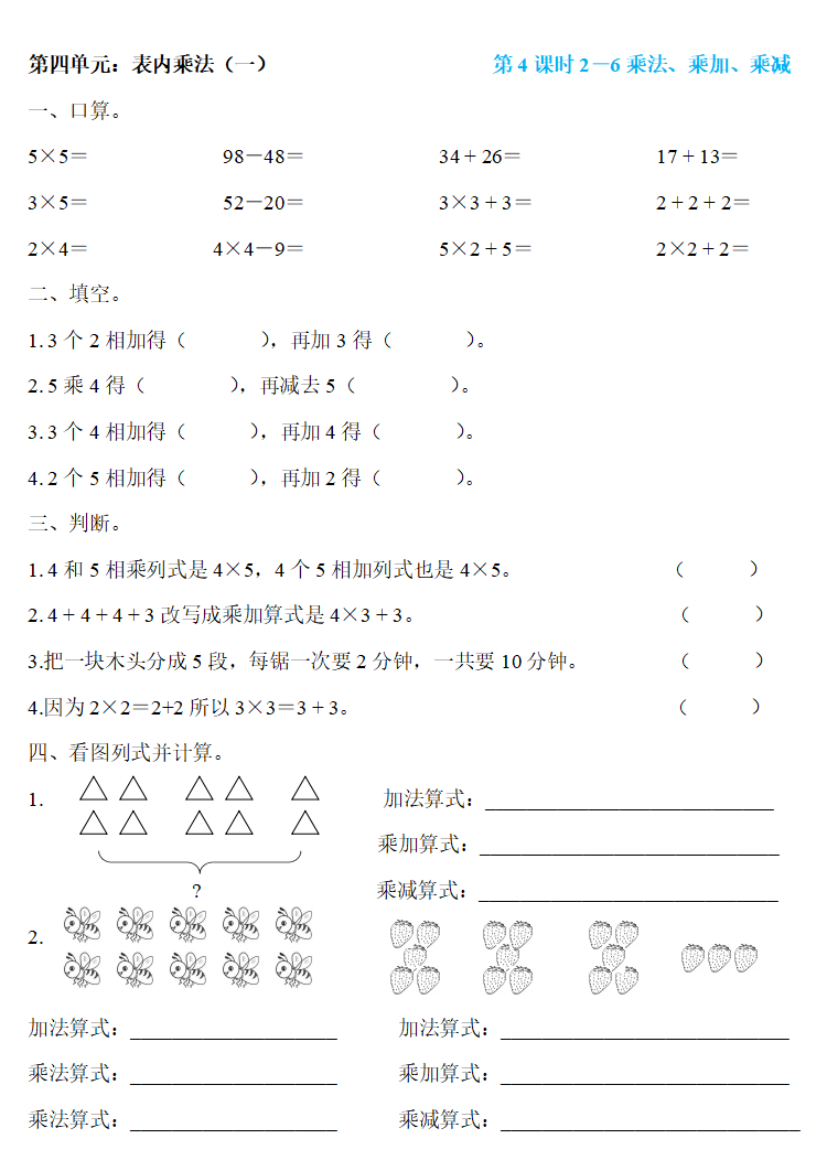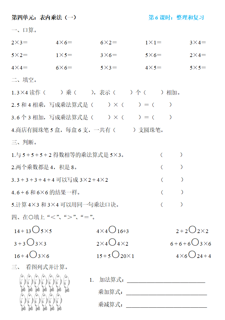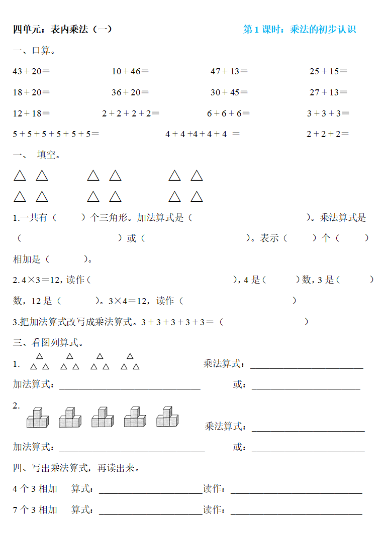 人教版二年级数学上册:第四单元《表内乘法(一)》精编一课一练,基础同步巩固!