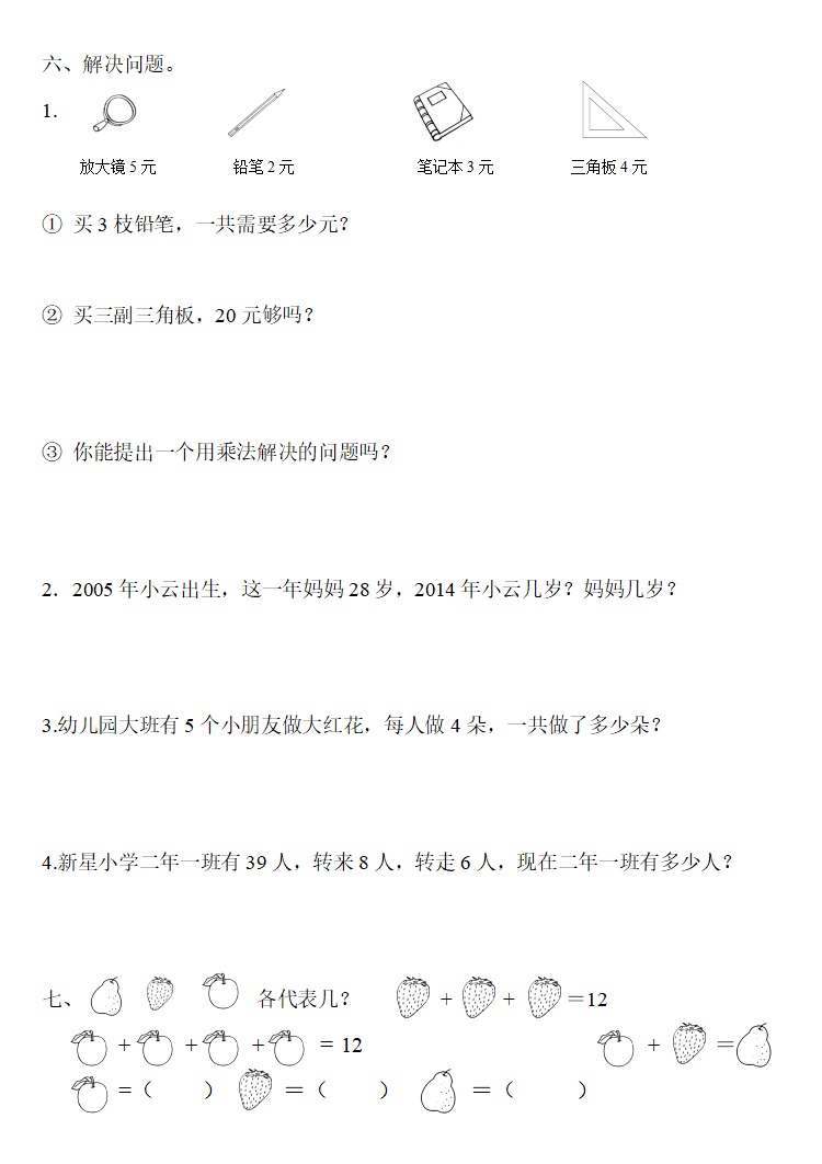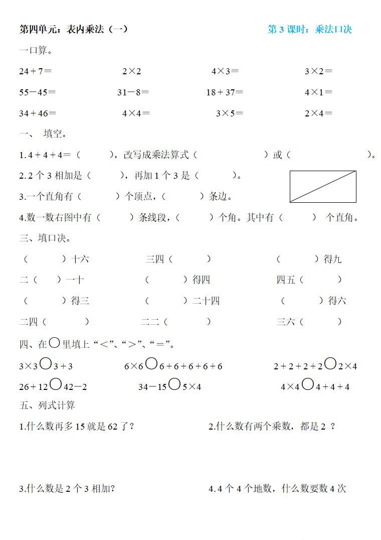 二年级数学上册:第四单元精编一课一练,基础同步巩固!