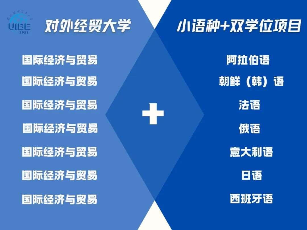 在“小语种+”双学位项目方面,对外经贸大学更是走在了前列。该校结合国际经济与贸易等热门专业,推出了多个“小语种+”组合如“国际经济与贸易+阿拉伯语”、“国际经济与贸易+法语”等。