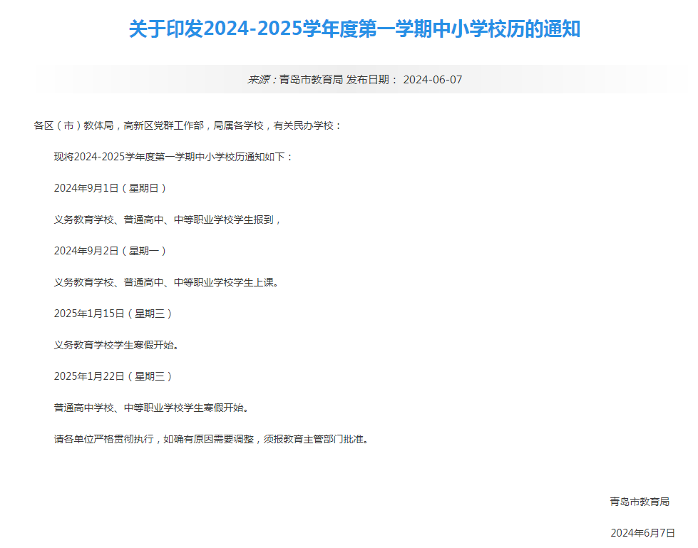 *早1月15日!山东6市公布中小学寒假时间安排公布!