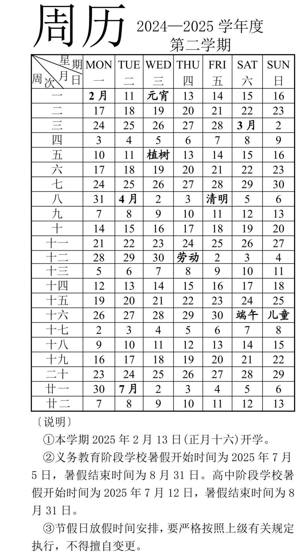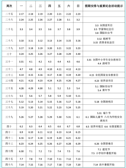 高中阶段:2025年1月23日(腊月廿四)-2025年2月13日(正月十六)