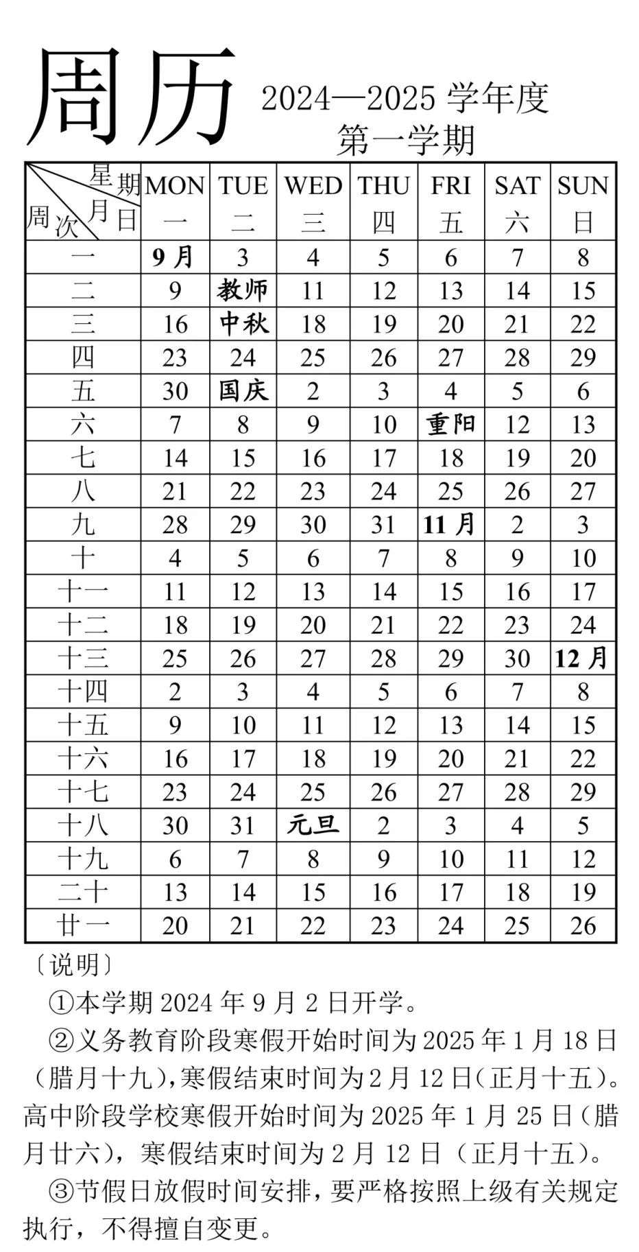 义务教育阶段学校:寒假自2025年1月19日开始,至2月12日结束,共计25天。
