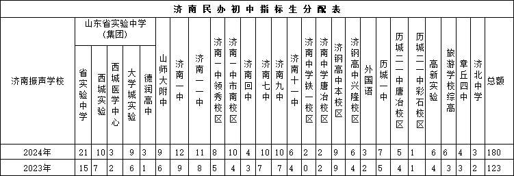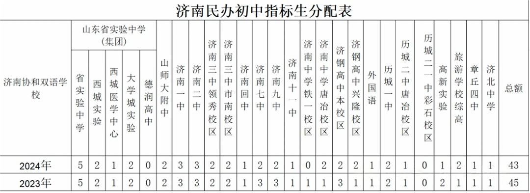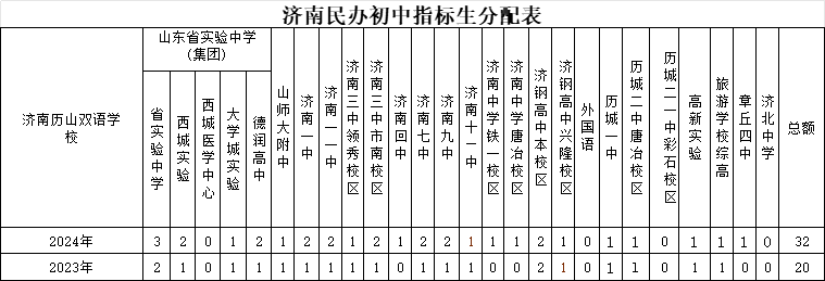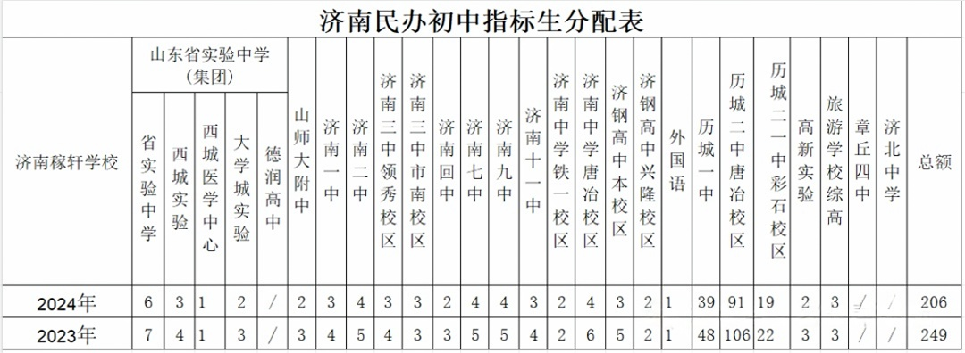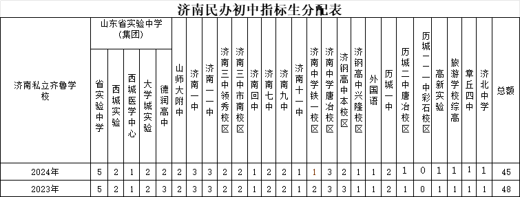 今天小迪为大家整理了2023年、2024年济南各民办初中学校指标生名额的数量对比,供大家参考。