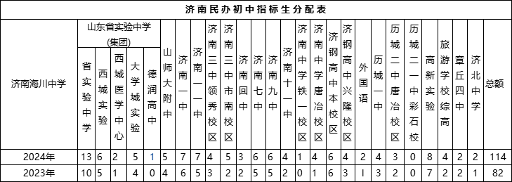 高新区海川中学拥有114个指标生名额,相较于2023年增加了32个名额。