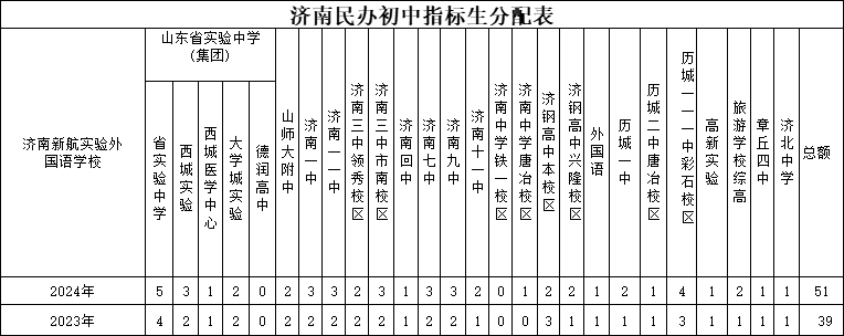 济南新航实验学校拥有51个指标生名额,相较于2023年新增12个名额。