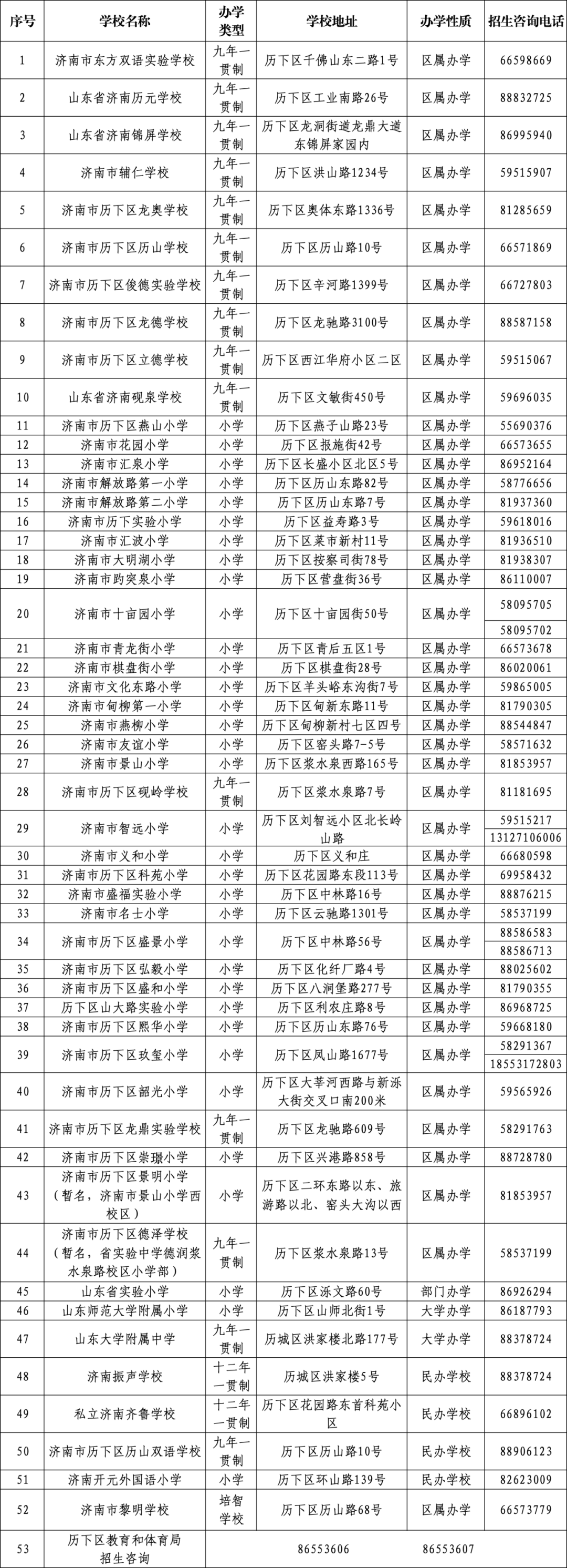 7.历下区教体局咨询电话:0531—86553606 86553607,咨询时间:工作日8:30-11:30,13:30-17:00