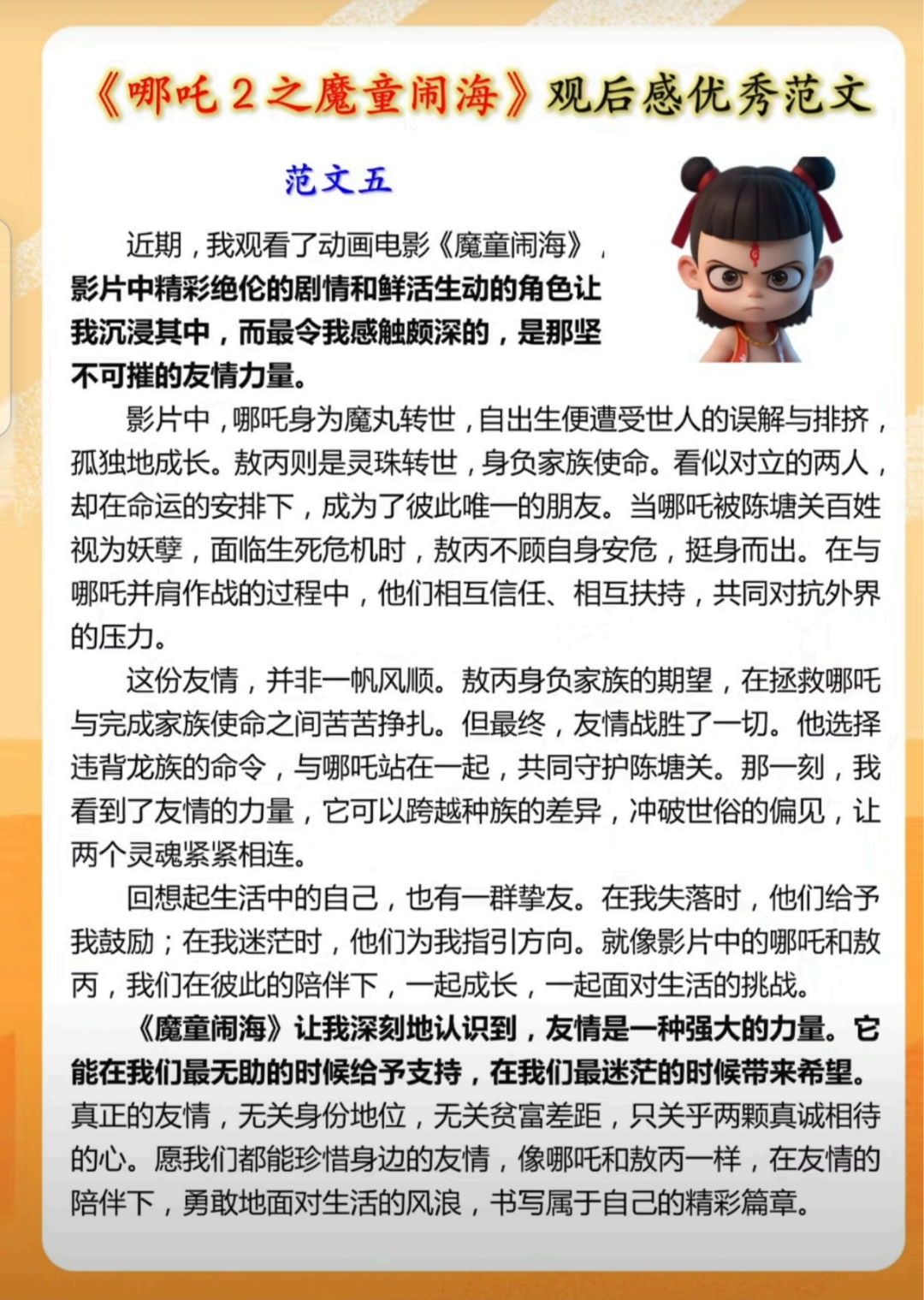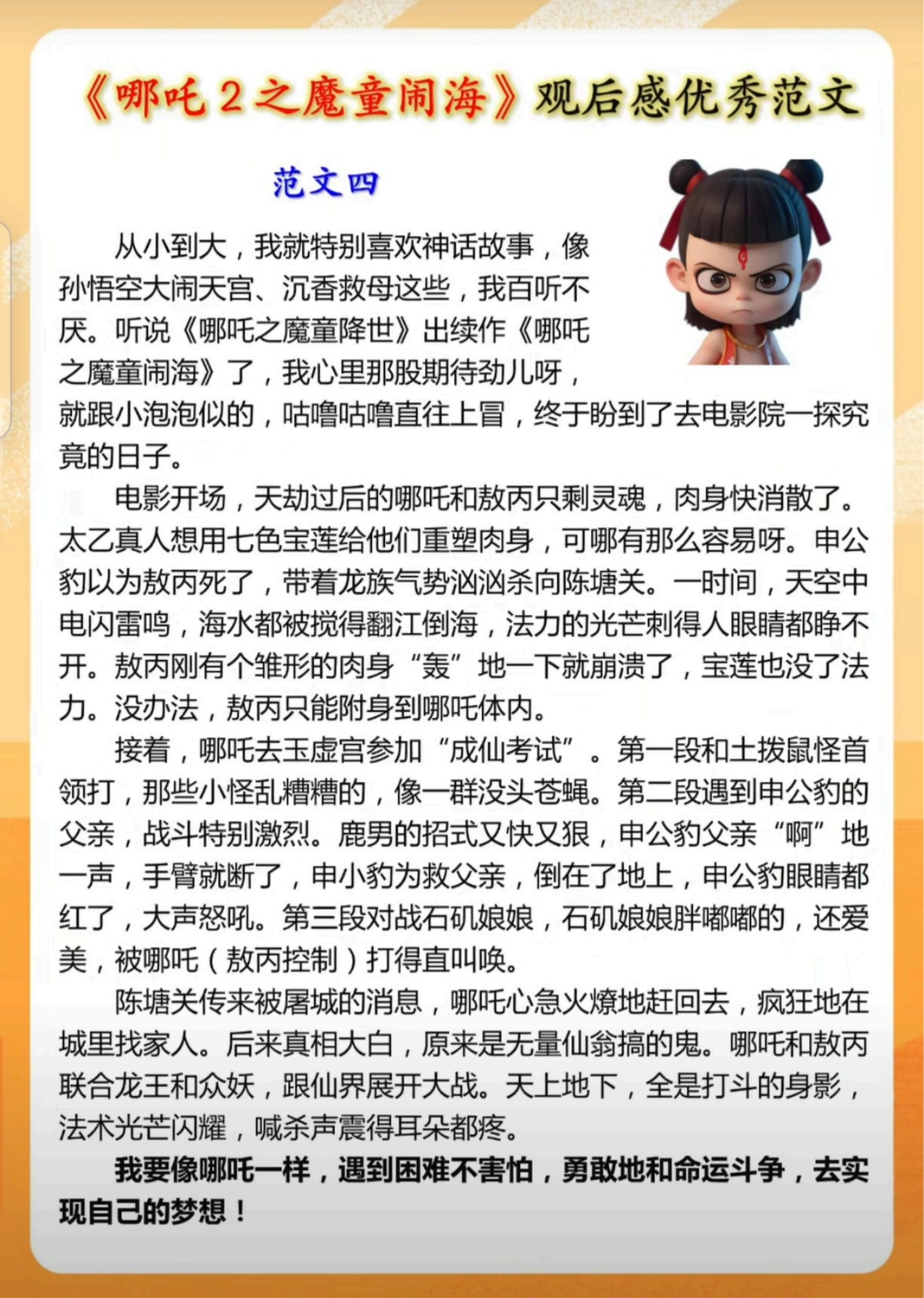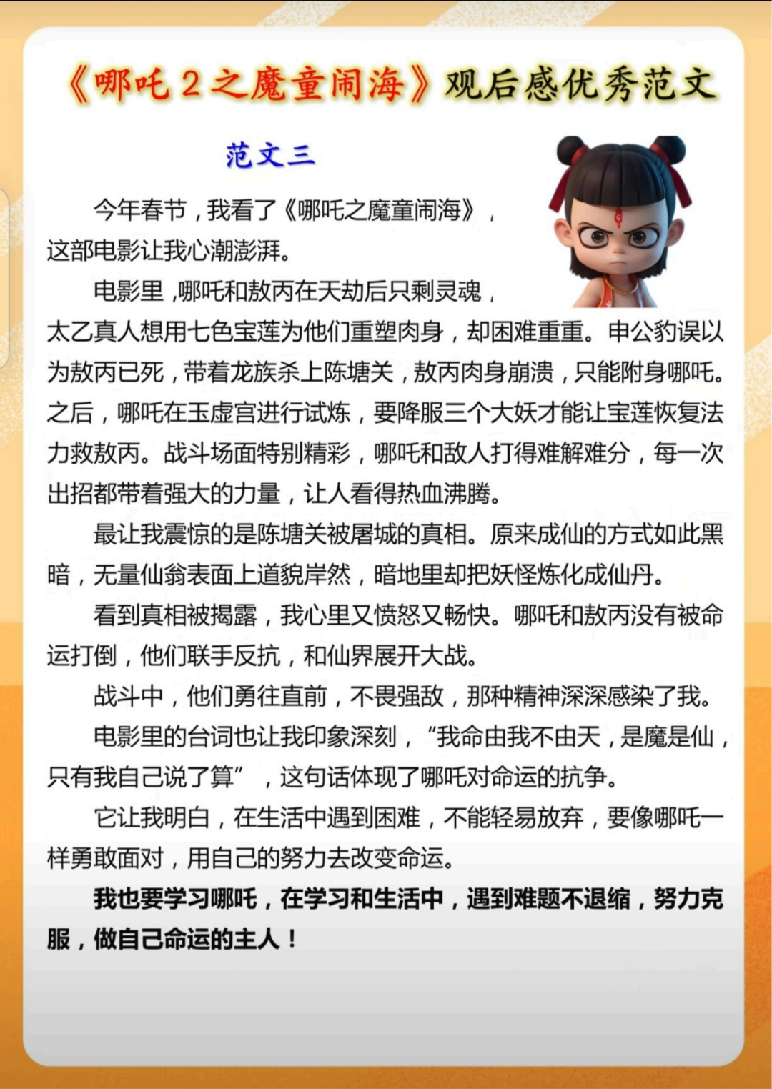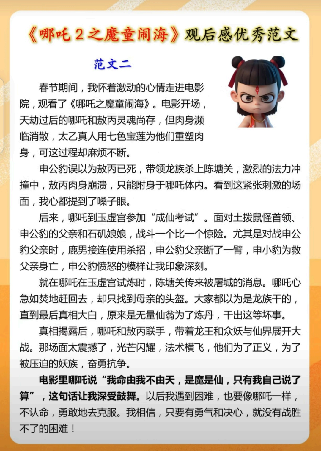 《哪吒2》观后感,篇篇都是满分作文,寒假写作必备!(附电子版)