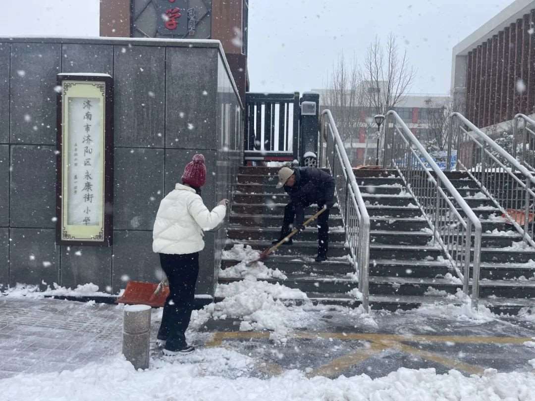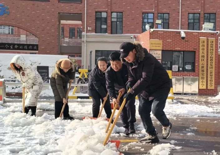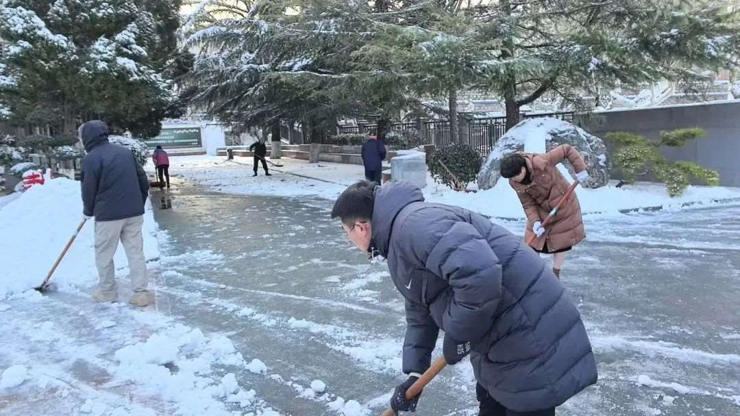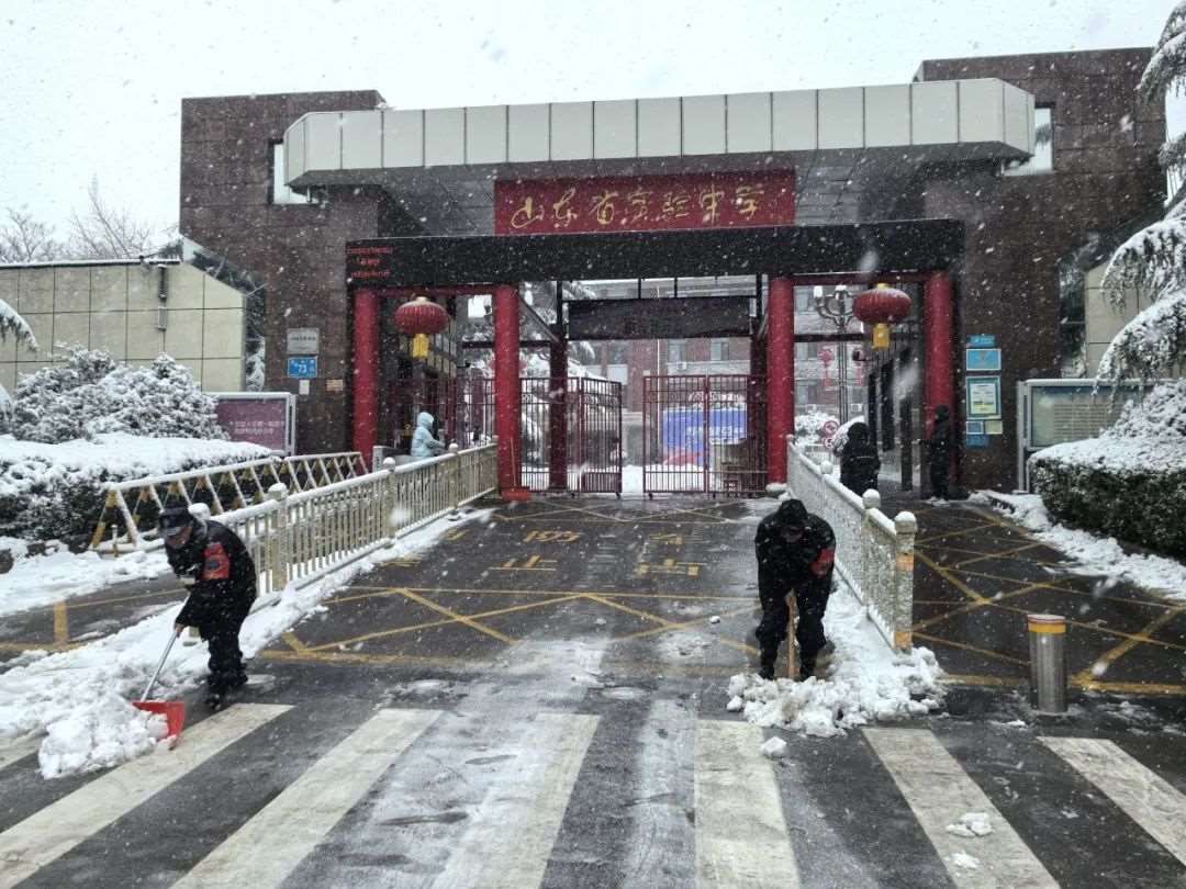 直击暴雪后济南校园→扫雪除冰“火力全开 ”
